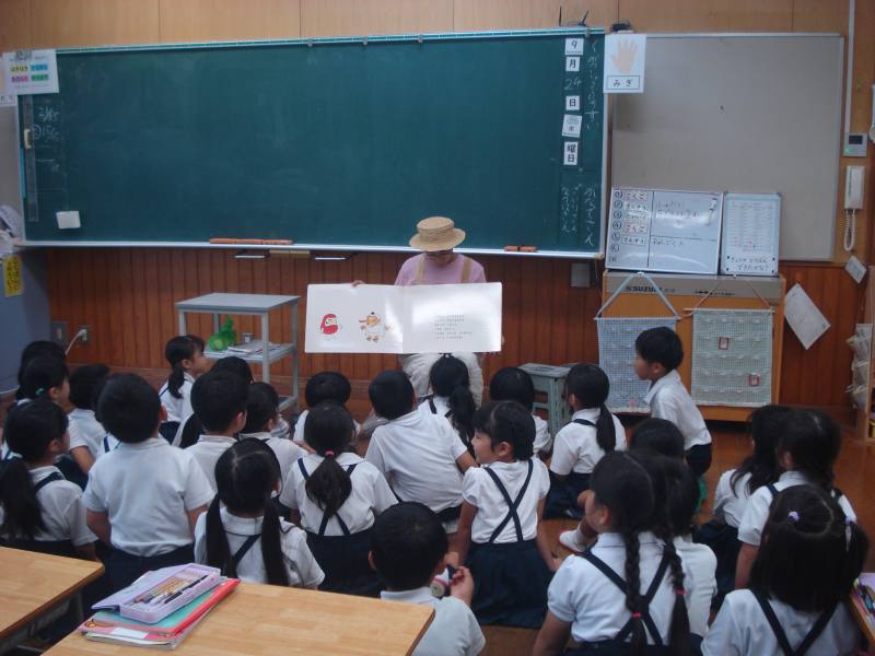 24日(水)の朝活動の時間、各教室でお話のクレヨンさんに読み聞かせをしていただきました。