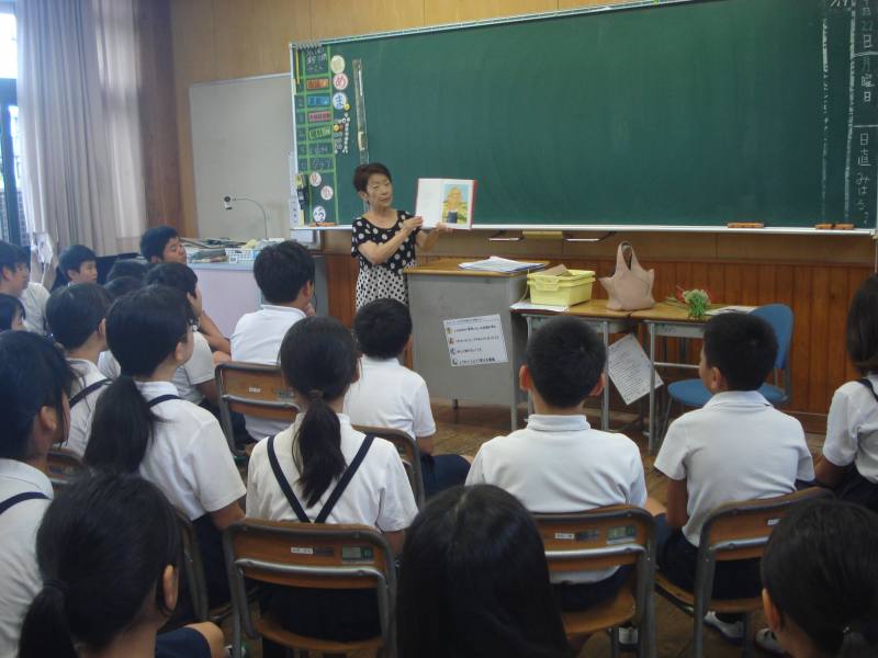 今回は、低学年には楽しめる内容のもの、高学年には道徳的な要素のあるものや戦争に関するものを選んでいただきました。子どもたちは真剣な眼差しで静かにお話を聞くことができました。
