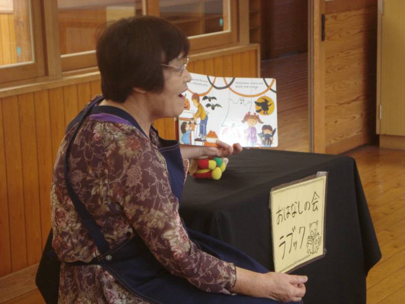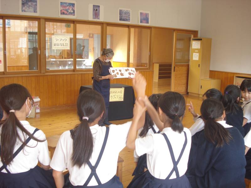 23日(木)の昼休み、図工室でラ・ブックさんによるおはなし会がありました。