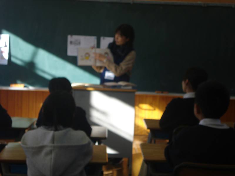 今回は、楽しいお話や少し悲しいお話、本当にあったお話、昔話など、さまざまな絵本を読んでいただきました。6年生には、同じ物語を日本語と英語、中国語版で読み比べをしました。読み終えた後、子どもたちに実際に絵本を手に取って見てもらうと、多言語で書かれた絵本に興味を持ち見入っている様子でした。