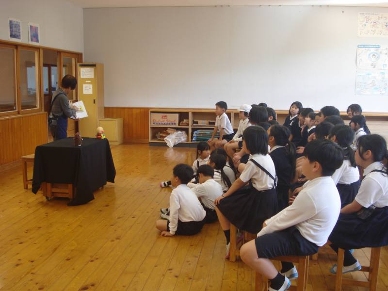 6日(木)の昼休み、図工室でラ・ブックさんによるおはなし会がありました。