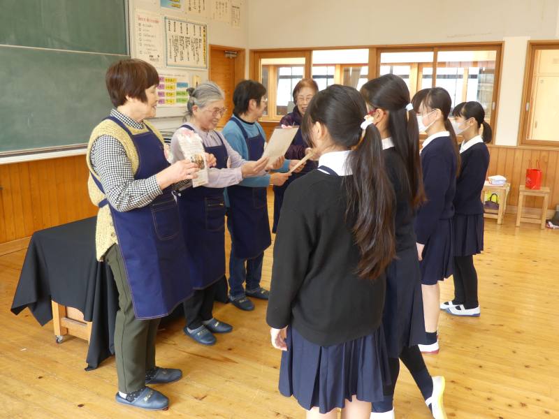 今年度最後のお話会でしたので、児童を代表して図書委員からラ・ブックの皆さんへお礼のメッセージを寄せた色紙をプレゼントしました。