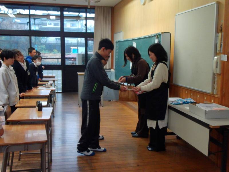 今回は、今年度最後の読み聞かせでした。各クラスの代表児童からお話のクレヨンさんに「お礼のメッセージを寄せたカード」をプレゼントしました。