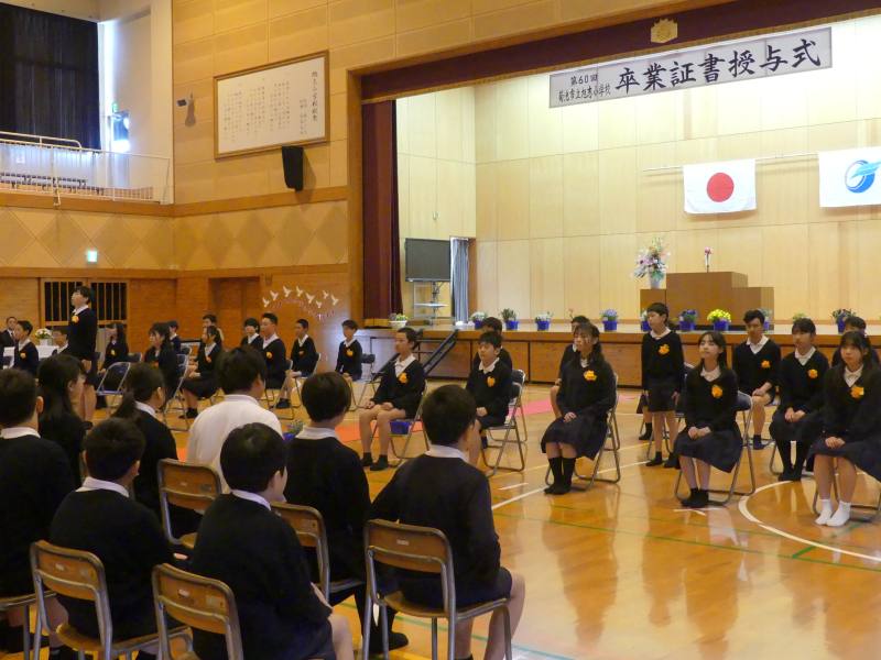 23日(月)、旭志小学校第60回卒業証書授与式を開催しました。卒業証書授与式は、6年生にとって小学校生活の集大成となる大切な式です。これまで卒業証書授与式に向けて、「動きの確認」「別れの言葉の練習」に励んできました。
