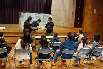 3,4年生に募集をかけ、しめなわ作りをやってみたいご家族が集まり、楽しく活動することができました。