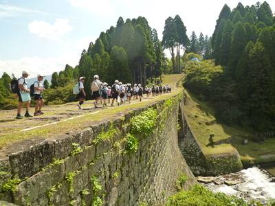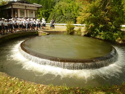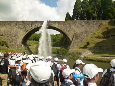 4年生は通潤橋に行きました。円形分水や放水を見学したり、通潤橋の上を歩いたりしました。