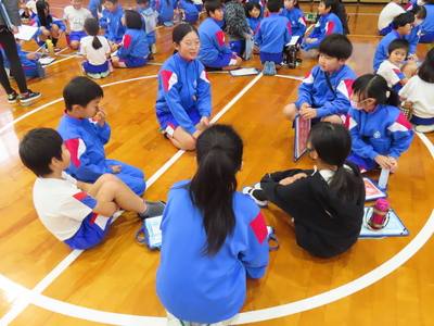 子どもたちは最初の自己紹介の場面からとても仲良く声をかけあい、楽しく活動していました。自分たちで楽しい雰囲気をつくり、明るく行動している様子を見ると、とてもうれしくなりました。