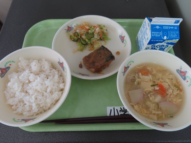 かきたま汁 さばのごまみそ煮 アーモンドあえ