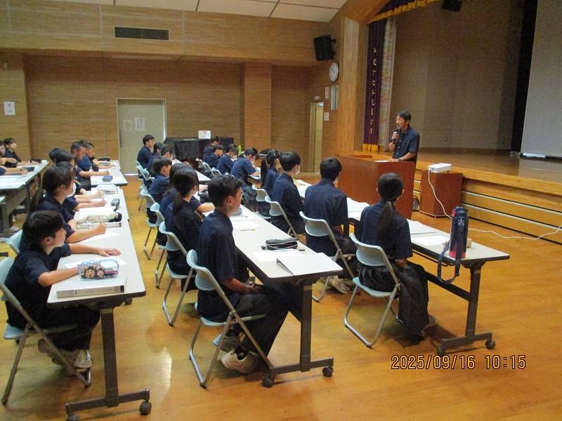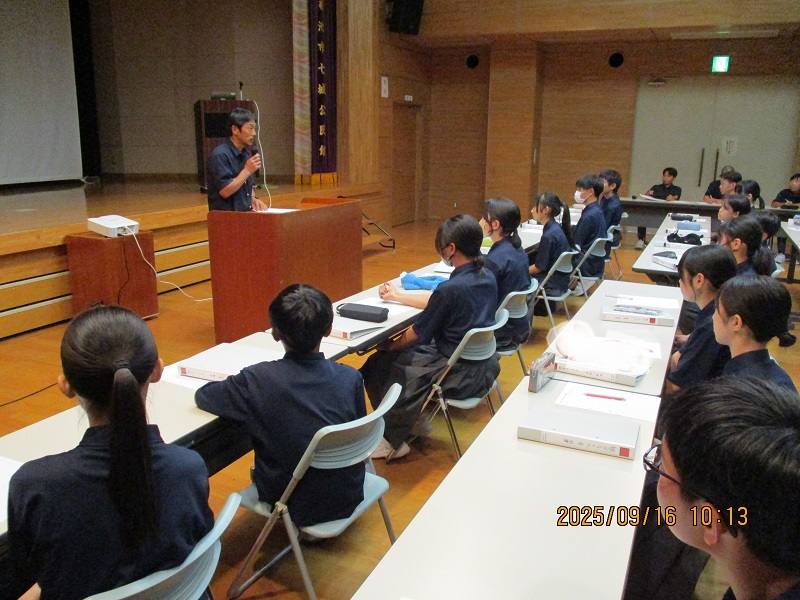9月16日、1年生は、水俣学習に取り組みました。講師は、水俣病の語り部で、漁師の杉本 肇さんです。杉本さんの生の語りを聴いたことで、命の海を汚された悔しさ、病気の苦しさ、家族の悲しみ、差別の辛さなどが、1年生の胸に深く響いたようです。