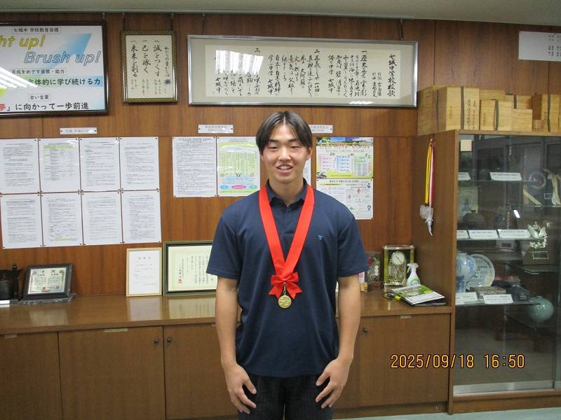☆「中学生の時は引っ込み思案だったけど、高校に入り、『甲子園出場』という夢や目標が明確に決まってからは何事にも積極的に取り組むようになった。今の七城中生にも明確な夢や目標をもってほしい。」