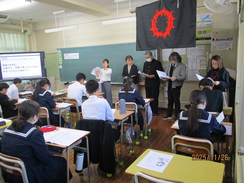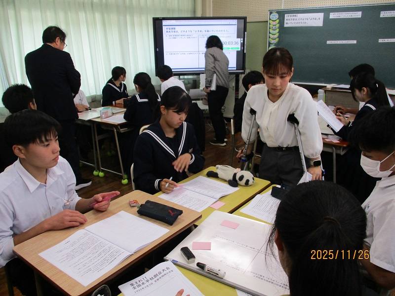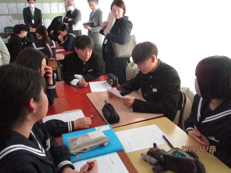 11月26日(水)、菊池地区人権教育授業研究会が七城中学校で行われ、菊池市内から多くの先生方が来校されました。