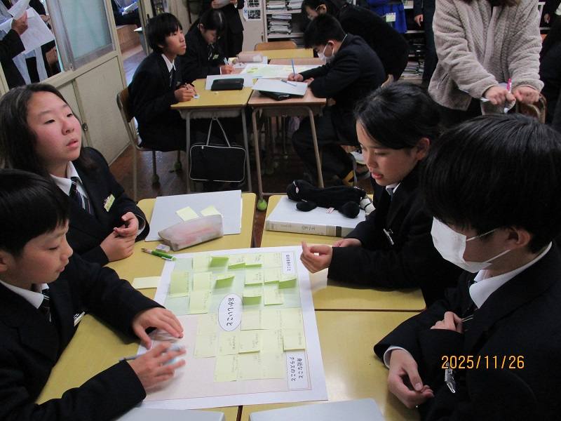 協力者の先生や他校の先生方からは、良かった点や改善点などたくさん意見をいただきました。今後、人権教育に取り組んでいく上でしっかりと生かしていきます。本当にありがとうございました。1年人権学習1年人権学習2年人権学習2年人権学習3年人権学習3年人権学習