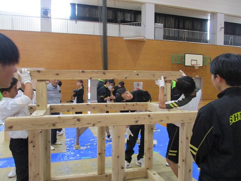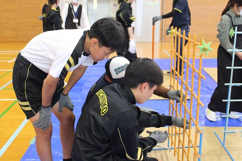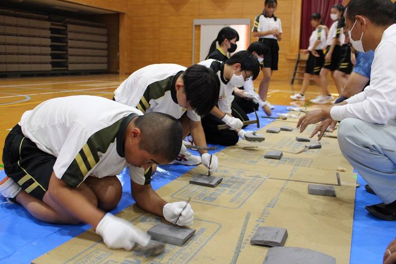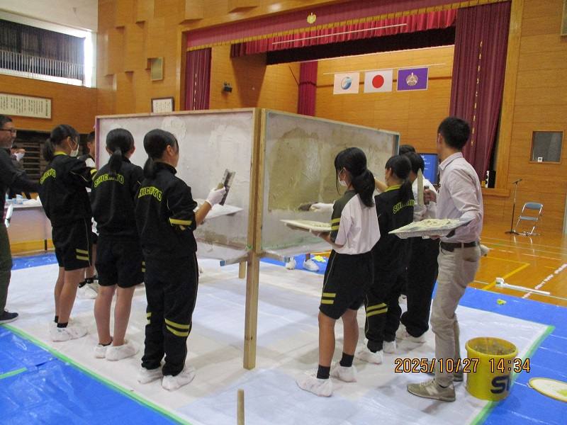 10月27日(月)、2年生が技能体験をしました。先生は、菊池技能士会の皆様です。大工、左官、鉄筋、瓦等の技能に挑戦した2年生。慣れない手つきの2年生に作業のコツなどを優しく教えてくださる技能士会の皆様。2年生は、「早さ、美しさ、頑丈に、安全に、などを意識して丁寧に作業されていることが体験して分かった。」という感想を述べていました。 職人の皆様、貴重な体験をさせていただき本当にありがとうございました。