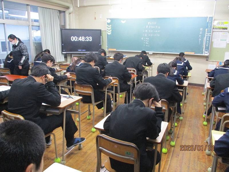 1月13、14日は実力テストが行われました。この実力テストは、冬休み中に、ゲームなどをしてゆっくりするだけでなく、自ら学習する時間をつくり、実際に学習に取り組むことができたかどうかが試されています。
