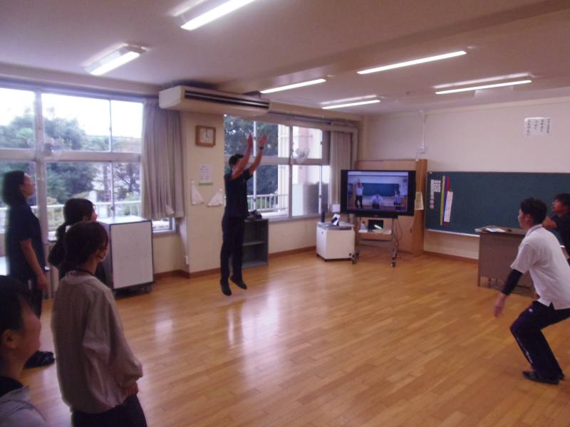 屈伸、伸脚だけでなく、もも上げや手拍子ジャンプなど体作りの動きも多く取り入れられています。