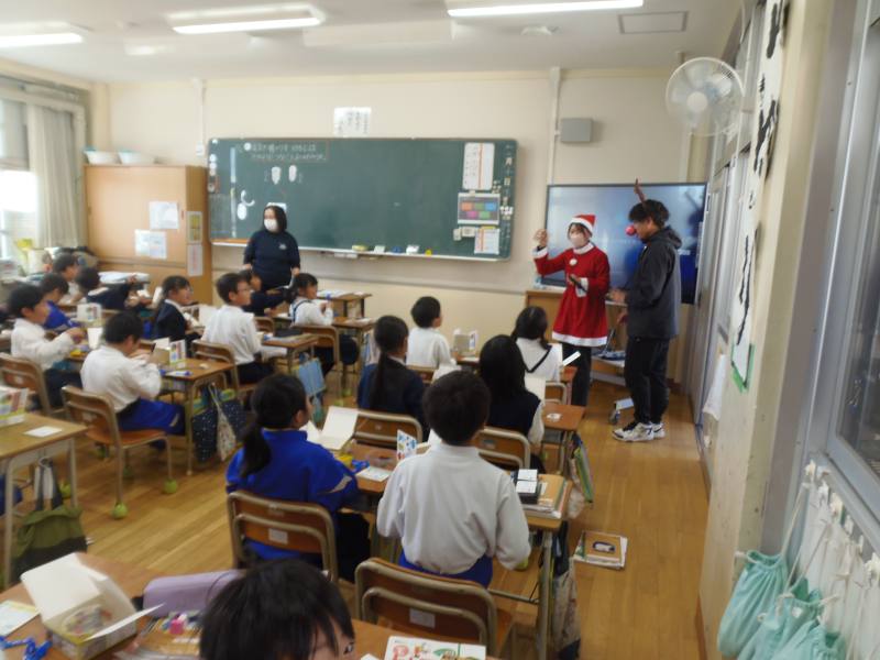 理科の「電気の通り道」の学習では、電気が流れる仕組みを生かしたクリスマスの飾りを作っています。授業の導入では、サンタクロースとトナカイが登場しました。「サンタさんやトナカイさんに喜んでもらえるようなクリスマスの飾りを作ろう!」と意欲的に学習に向かっていました。