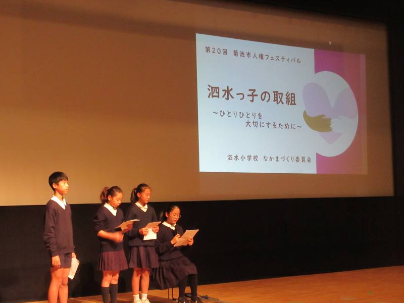 12月13日(土)に泗水ホールで第20回菊池市人権フェスティバルが開催されました。部落差別をはじめあらゆる差別をなくすために開催されています。