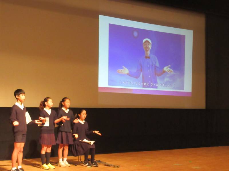 その中で、泗水小学校なかまづくり委員会の代表者が泗水小学校の取組について発表してくれました。