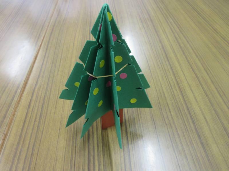 2年2組のみんなが手作りのクリスマスツリーのプレゼントを持って来てくれました。