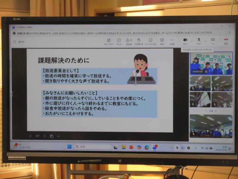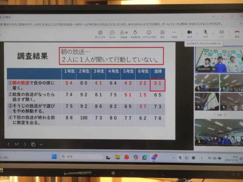 放送委員会は、放送に関する実態調査を行い、泗水小学校の課題を見つけ、その対策を示してくれました。