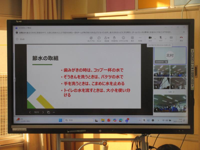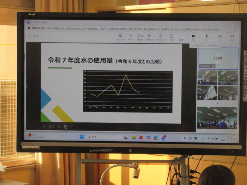 同様に環境ISO委員会は、泗水小学校の掃除の取り組み方の実態や電気水道料金の実際を調べて、掃除の仕方や電気や水の使い方を提案してくれました。