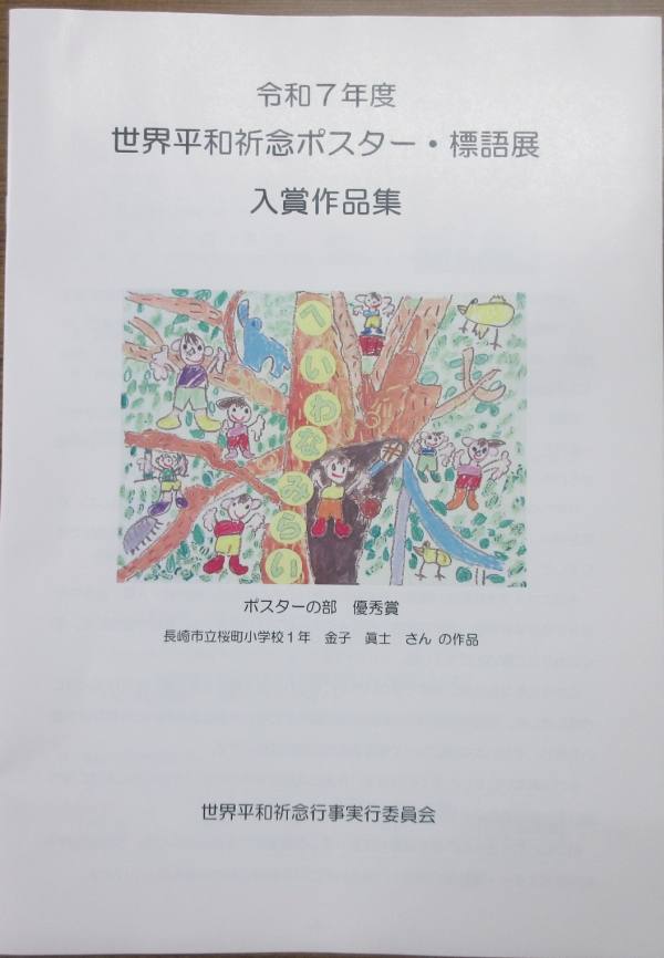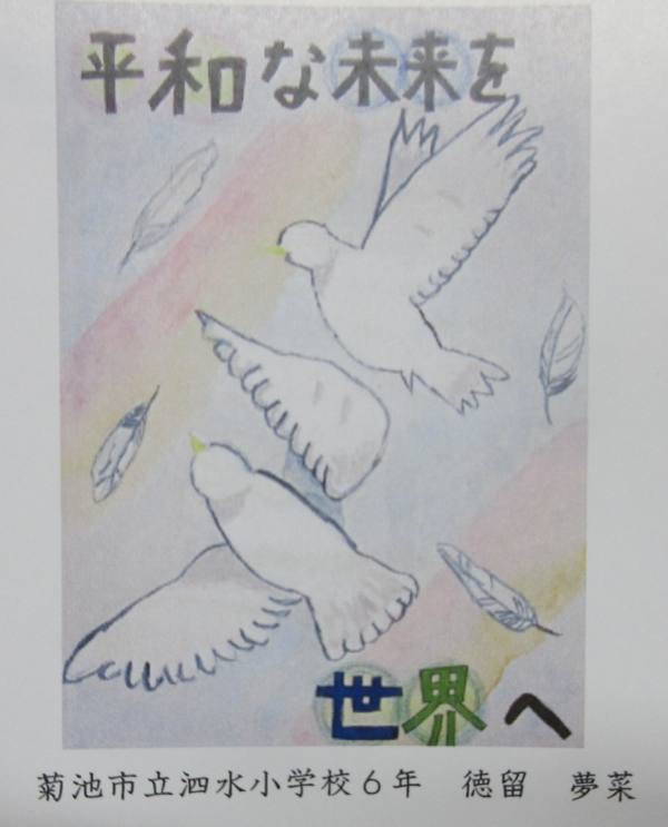 夏休みに募集が行われた「世界平和祈念ポスター展」に6年2組徳留夢菜さんが入賞しました。この度、入賞作品を収録した冊子が学校に送られてきました。