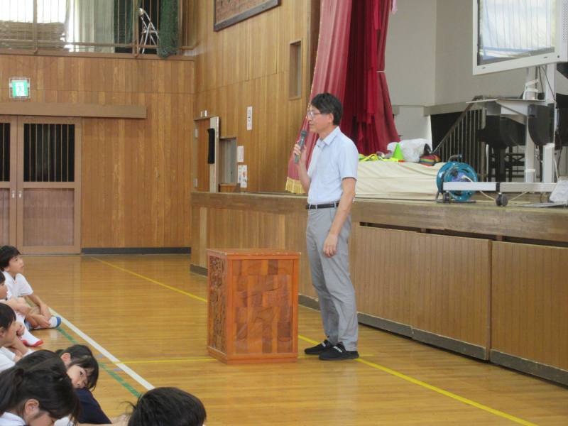 後期の始業式でも無言入場、無言待機、無言退場ができており、大変感心しました。また、話の聞き方もとても上手でした。やはり泗水小学校の子どもたちはすごい力を持っていますね。その素晴らしい力を後期もどんどん発揮してほしいと思っています。