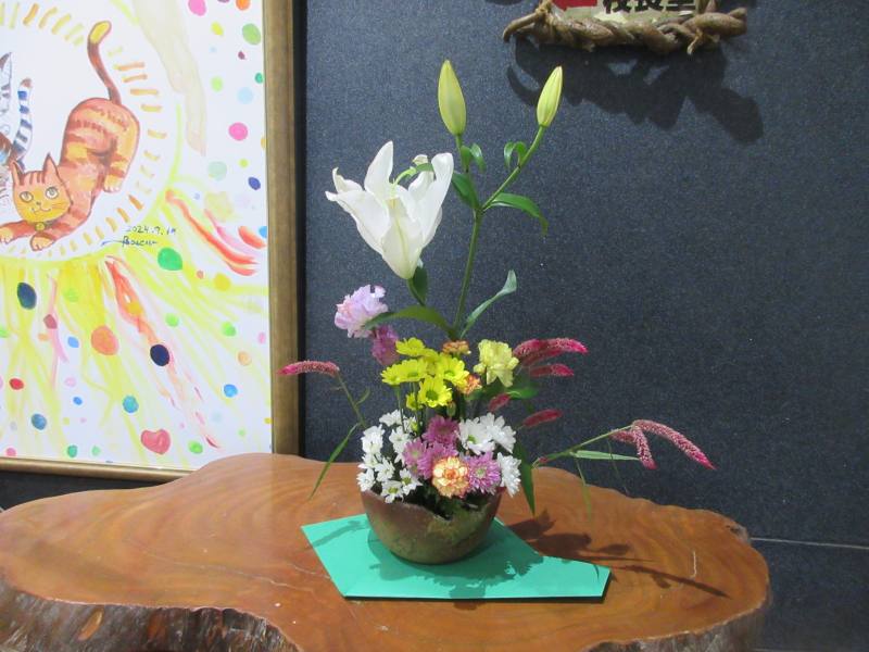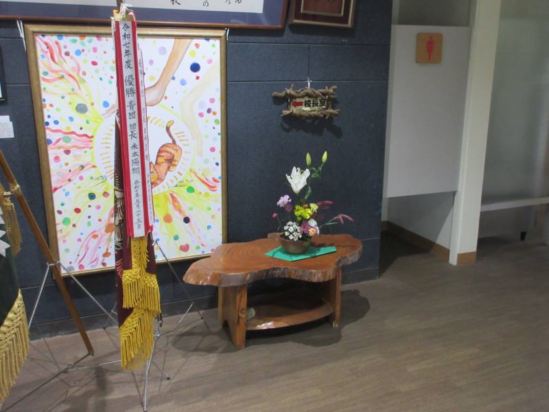 ふと気づくと玄関にきれいなお花が活けてありました。井出みどり先生がわざわざご自宅から持って来てくださったそうです。ありがとうございます。ユリの香りが校長室まで届いています。