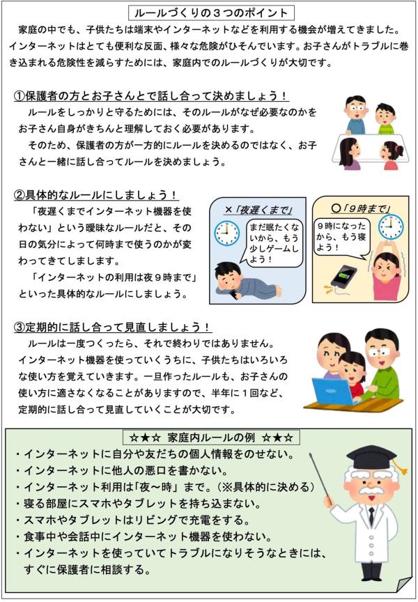 お子様と一緒にご確認いただき、家庭でのインターネットを使う際の約束ごとなどにお役立てください。