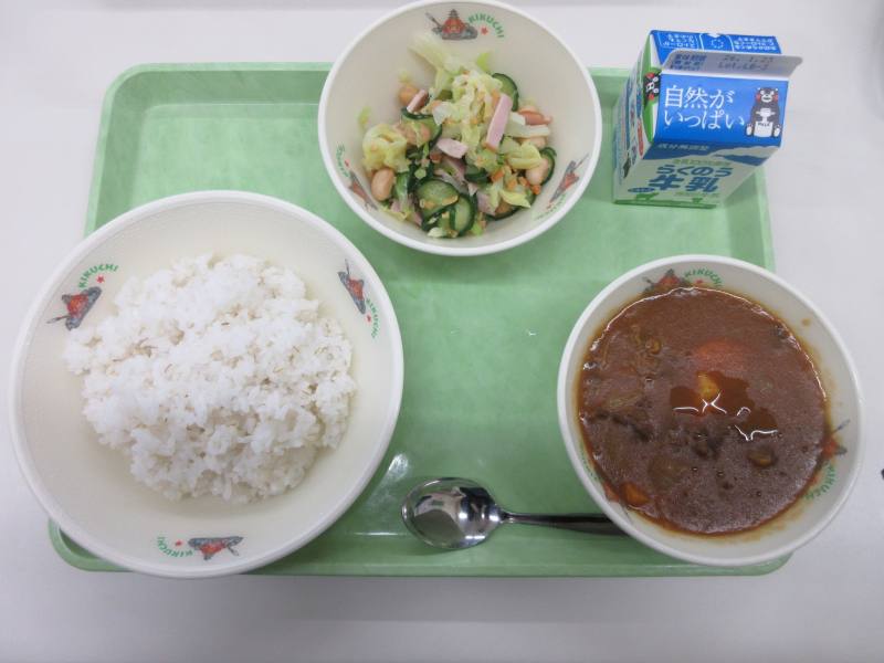 さて、今日は子どもたちの大好きなカレーでした。しかも、ビーフカレー!!スパイスの香りが豊かで、ジャガイモや玉ねぎ、にんじんがたくさん入っていて最高でした。ビーンズサラダは歯ごたえもよく、カレーにもばっちりあいました。