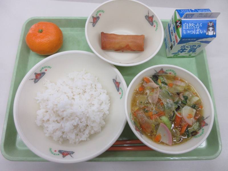 中華丼ぶりは、12種類の具材が入っており、ボリューム満点でおいしかったです。春巻は外はカリカリ、なかはもっちりとしていてもう1本ほしいくらいでした。みかんはとても甘くてジューシーでした。