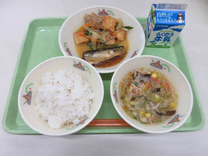いわしのしょうがには、骨まで柔らかく、味もしっかりしていてご飯とよく合いました。厚揚げと野菜のみそ炒めは、みその味付けで野菜が苦手な子どもも野菜が食べられるようにくふうしてあり、おいしかったです。春雨スープは、ゴマの風味が香り、具沢山で満腹になりました。