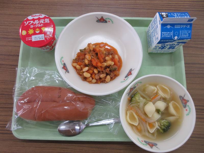 冬野菜とマカロニのスープは、寒くなってきたこの季節によく合うメニューでした。マカロニがたくさん入っていて、食べ応えがあり、野菜の甘みが感じられとてもおいしかったです。ヨーグルトまであって大満足でした。