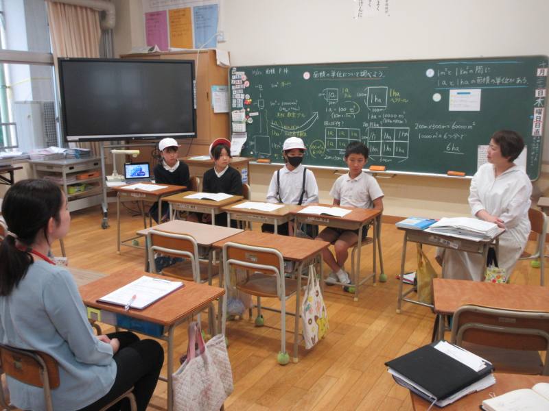 その後、授業研究会(授業の内容についての授業後の検討会)が行われました。11月21日の研究発表会では、授業研究会の冒頭部分には子どもたちも参加します。子どもたちが、授業後に感想や意見を述べます。