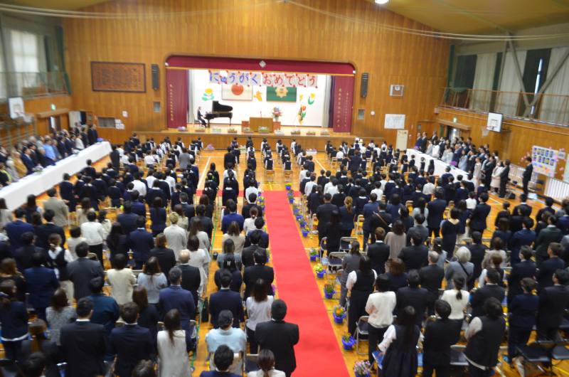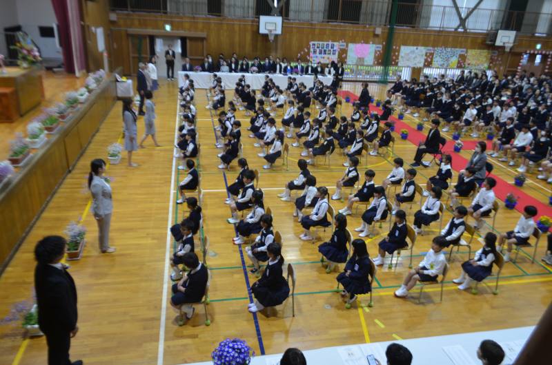 今年度は、89名の児童が入学しました。入場曲の「さんぽ」に合わせて、堂々と歩く姿がとても印象的でした。