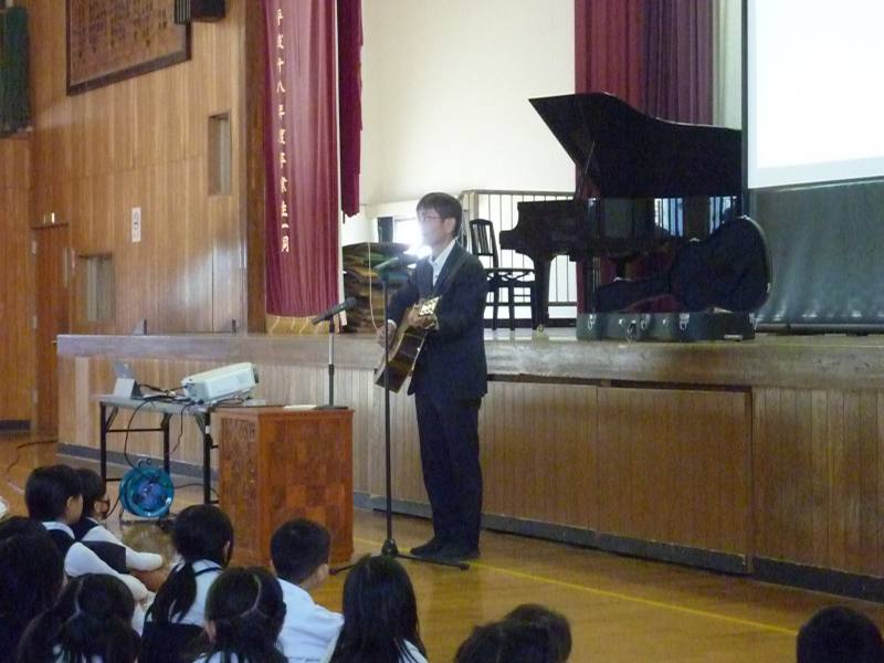 校長先生の弾き語りでは,歌に合わせて子どもたちが手話をしていました。