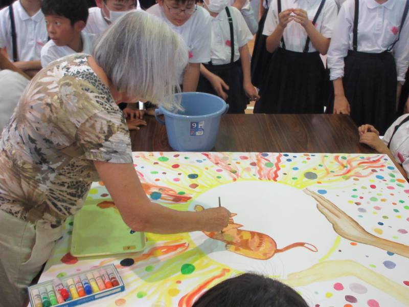 絵画制作の後は、お二人に対して子どもたちからたくさんの質問が出ました。画家夫妻も笑顔で対応してくださり、本当に貴重な経験となりました。