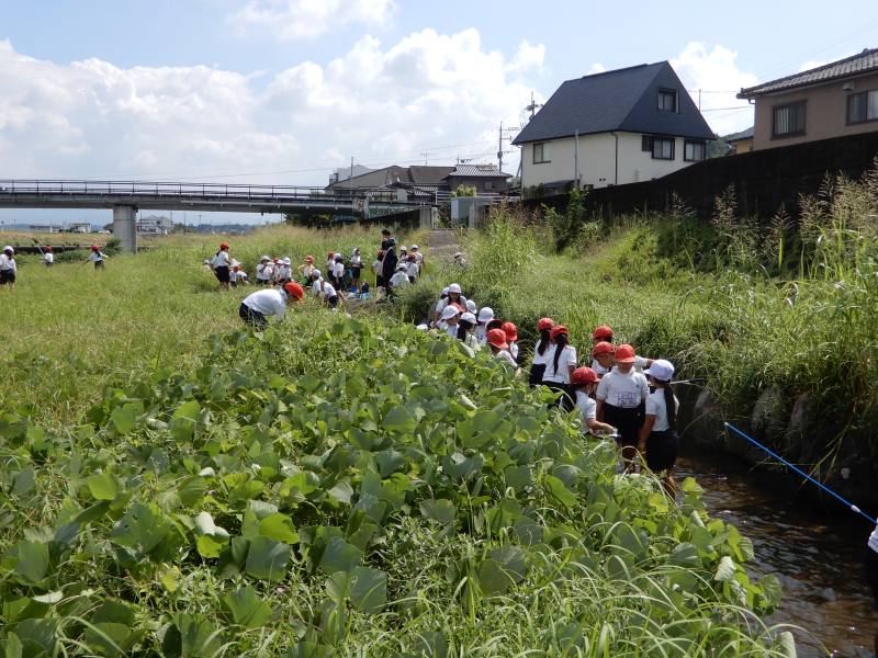 2年生が、生活科「生きものなかよし大さくせん」の学習で合志川河川公園に行き、生き物探しをしました。