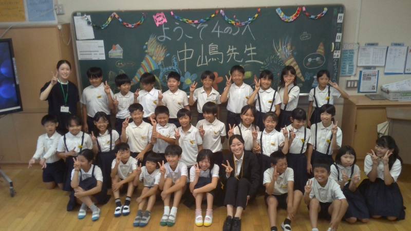 今月20日から、教育実習生の中嶋紅(なかしまこう)さんが泗水小へ来られています。