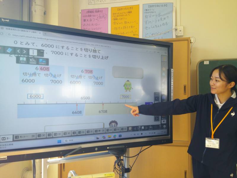約1か月の実習を通して、先生になるために多くの経験をされているところで、児童たちと笑顔で関わる姿がとても印象的です。