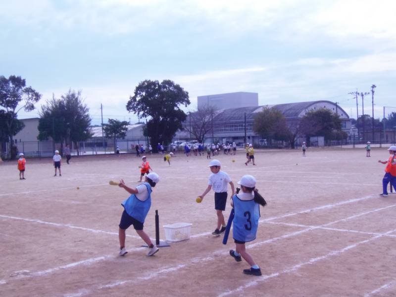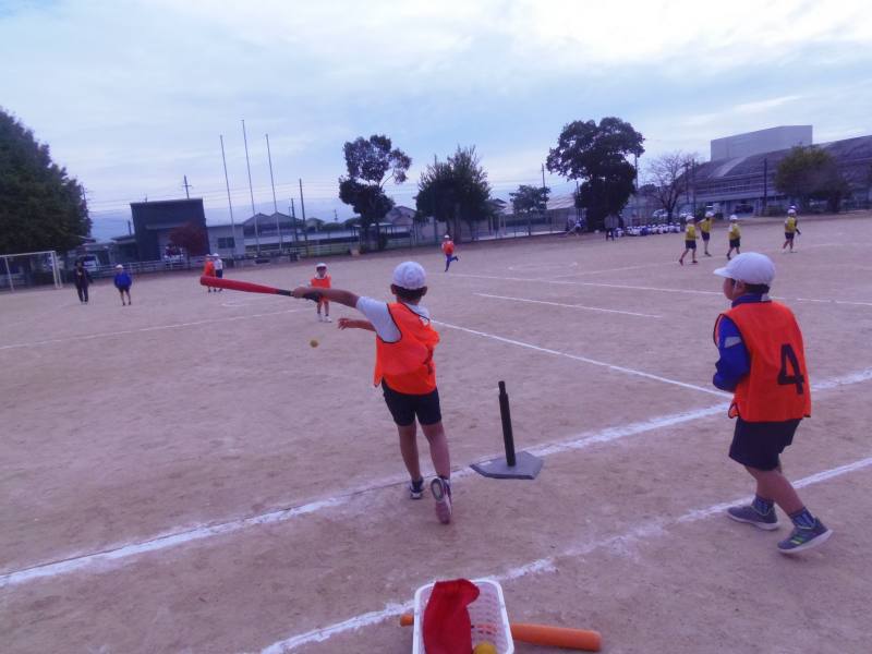 3年2組は、ティーボールの学習でした。力強くバットを振り、遠くまで打球を飛ばしていました。打つ相手を見て、守る位置を後ろに下げるなど、できるだけ点を取られないようにする工夫をしながら楽しんでいました。