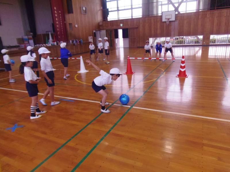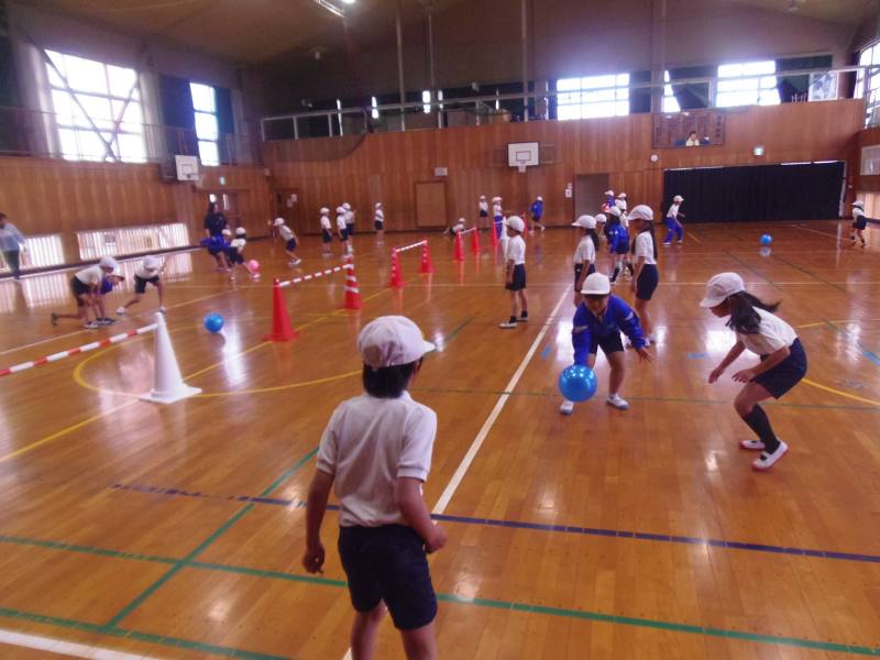 3年1組は、ネット型ゲームの学習でした。数人でチームを作り、フロアーボールを楽しんでいました。得点できるように力強くボールを打ったり、声を掛け合いながらボールを相手のコートに返したりしていました。