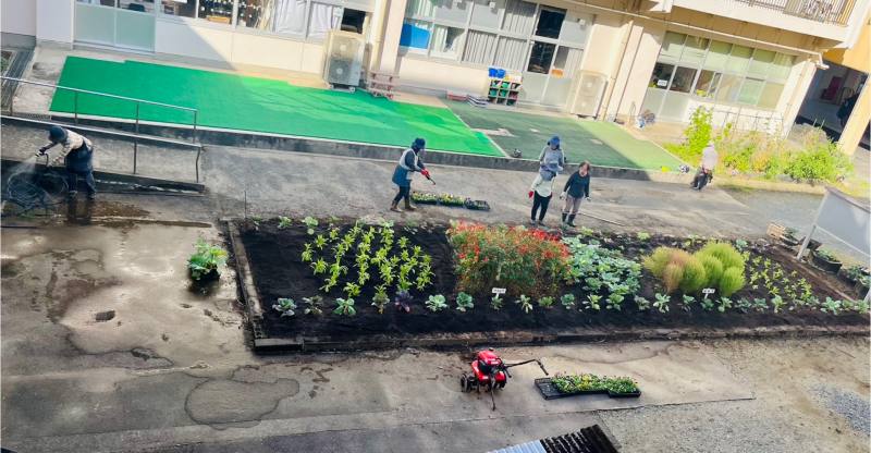 11月10日、スクールガーデニングクラブの皆様にお越しいただき、花壇を美しくしていただきました。