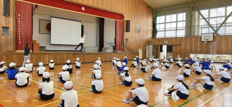 今日は、4年生で体育「リズムダンス」の授業を担当してくださいました。ダンスがご専門ということで、子どもたちにも分かりやすく楽しい授業をしてくださり、子どもたちもノリノリで踊っていました。