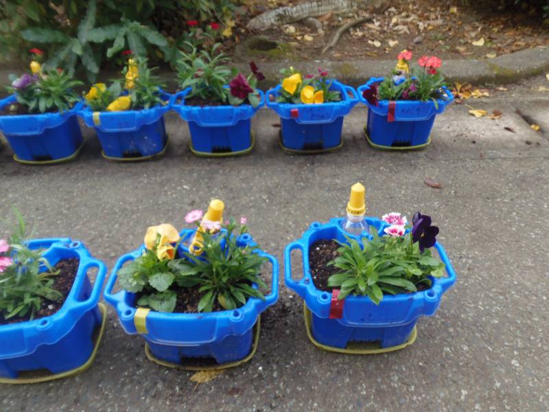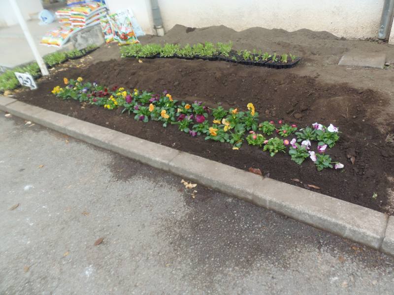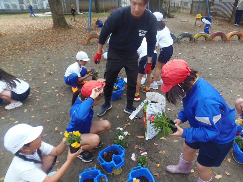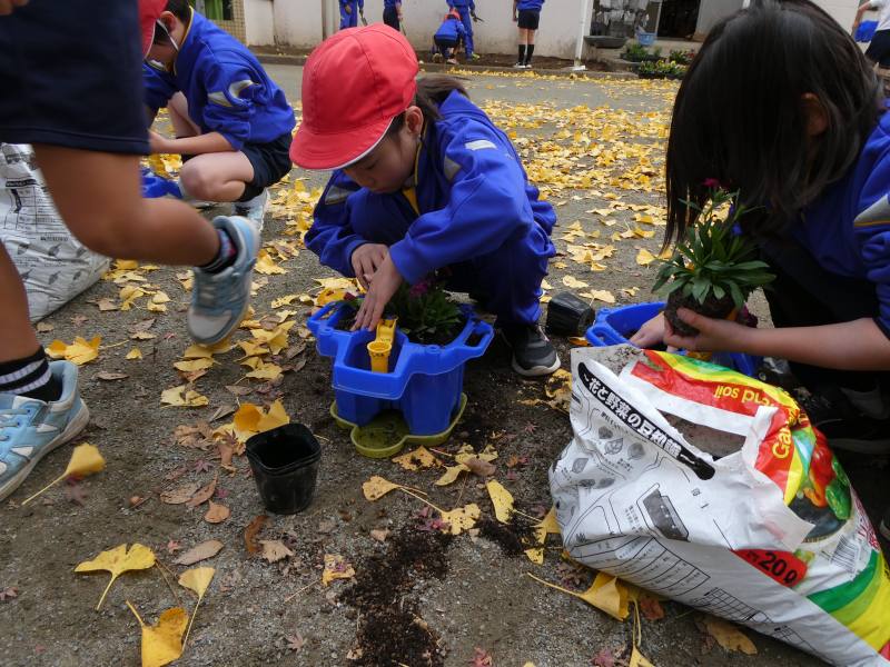 2年生が生活科の学習で、パンジーやビオラ等の冬の花を植えました。