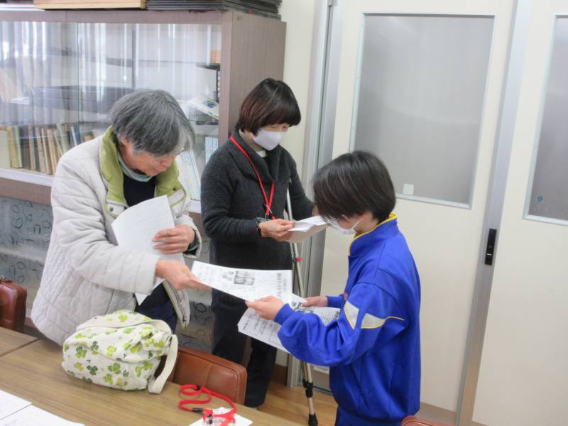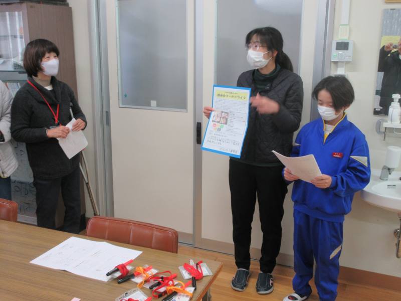 先日、赤ペン先生が1・2年生の学習指導に来ていただきました。その際、ボランティア委員会で取り組むフードドライブのチラシを配布しました。