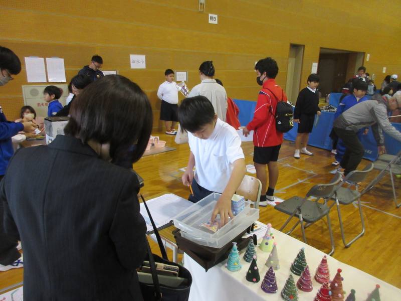 こすもす学級の子どもたちと先生方は、この日のために手作りのキーホルダーやクリスマスツリーなどを用意したり、ビンゴゲームの運営や物販の会計の練習をしたりしてきました。