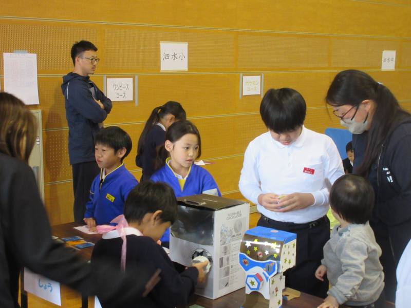 本番では、次々に来店するお客さんの相手をしたり、ゲームの説明をしたり、間違いのないようにお会計をしたり、お客さんを呼び込む案内をしたりと大活躍でした。