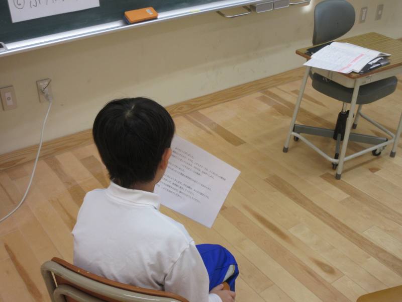 子どもたちは、先生の前で発表の練習をしたり、二人で練習したりしていました。