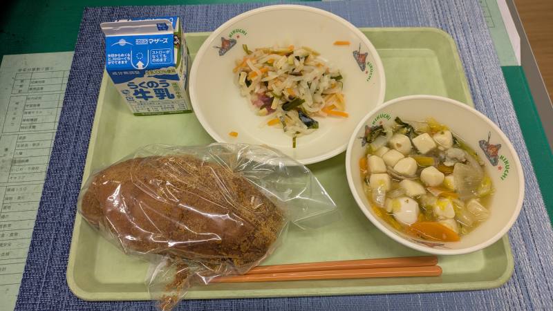 揚げパン 牛乳 豆腐と野菜の中華煮 大根と海藻のサラダ